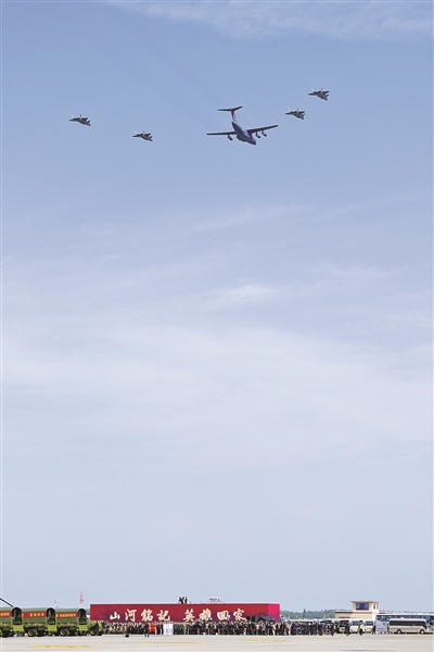 9月12日,在沈阳桃仙国际机场,接运烈士遗骸回国的运-20专机在4架歼-20飞机伴飞护航下即将降落。新华社发