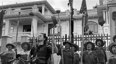 鲍小光是这个乡村版三国故事的导演,他的演员团队,大多由镇上的老人组成,这个乡村剧组也被大多数人称为夕阳红剧组。他说,“剧组有20位左右的老人参与拍摄,其中年龄最大的80岁。”