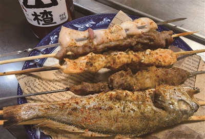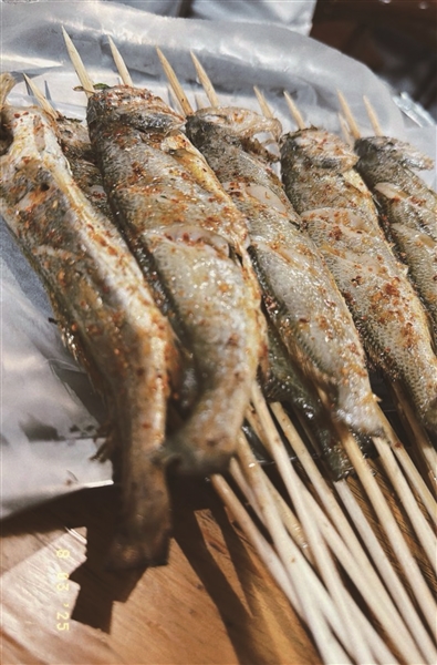 老杨的小黄鱼要烤到鱼皮微焦起皱,内里的鱼肉却嫩得一抿就化;肉本家的炭烤肉裹着秘制酱汁,在炭火上嗞嗞冒油,带着原始的焦香;金图门的串烤更是花样百出,从脆嫩的烤筋到多汁的烤翅,每一串都挂满了食客熟悉的味道。
