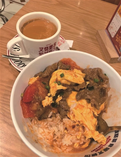 主食类推荐干炒牛河和叉烧卤味双宝饭,干炒牛河是检验茶餐厅水准的“黄金标准”,新曜记的版本完全达标:河粉爽滑筋道,裹着浓郁的酱汁却不黏腻,大块牛肉鲜嫩多汁,豆芽和韭黄增添清爽口感,火候掌控恰到好处。