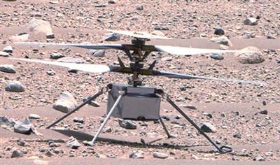 “机智”号直升机于2021年2月18日随美国“毅力”号火星车一起登陆火星。它重约1.8千克,有4片旋翼,由太阳能电池板为锂电池供电。同年4月19日,“机智”号完成在火星上的首飞。