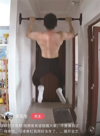 春节前,有位健身博主上传了一个视频:他正在家中的免打孔单杠上做引体向上,刚做了两个,单杠就突然掉了下来,人重重摔在地上。