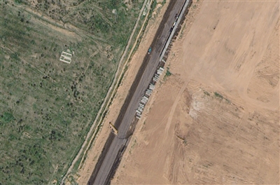 卫星图像显示,埃及与拉法之间的大片土地正被推土机推平,一堵高墙正在修建。CNN根据卫星图像分析,施工于2月初开始。