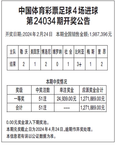 中国体育彩票足球4场进球