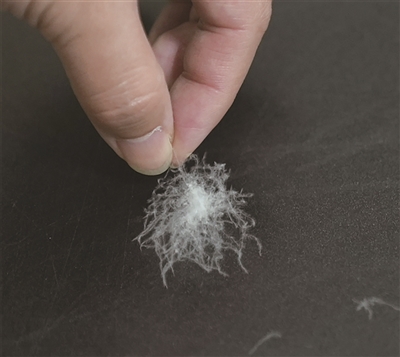 绒友自己研发的,面料是现在比较流行的糯感面料,手感软软糯糯的,用它做垫子,绒友确实也是挺舍得。填充物标的是“100%鹅绒丝”。