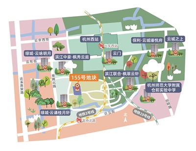 昨天的土拍中,位于云城的155号地块关注度较高,地理位置也相对较好——位于杭州西站的南侧,紧挨着云城内的地标建筑云门。