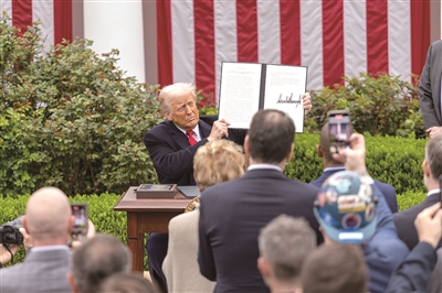 4月2日,美国总统特朗普在华盛顿白宫展示签署后的关于所谓“对等关税”的行政令。据新华社
