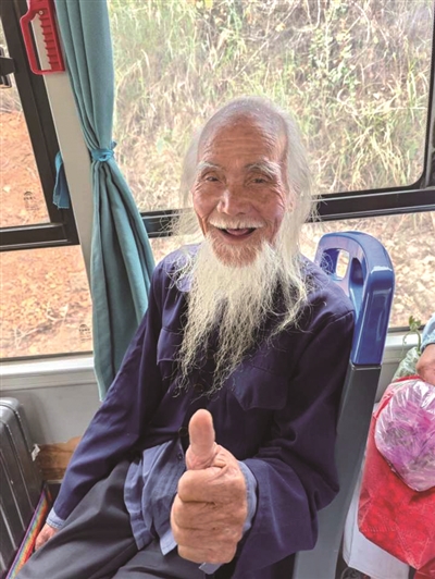 我再三感谢老人,同车的当地人说他已105岁,头脑清晰,耳聪目明,一直助人为乐。老人到站了,我目送老人下车,老人只是背微驼,行动有点迟缓。