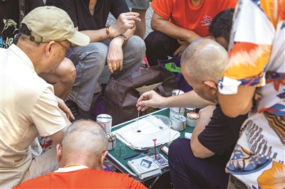 里仁坊巷中山中路口,众人围观斗蟋蟀。 本版摄影 记者 陈中秋