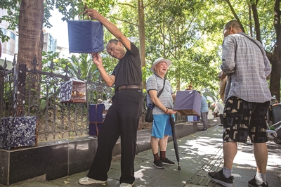 周末早上,养鸟爱好者在岳王路聚会交流。