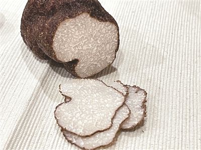 新鲜松露横切面的大理石纹路间,藏着层次丰富的香气:初闻是湿润泥土与松针的清新,细品渐显麝香与烤坚果的醇厚,尾调还带着菌类的微妙金属感,造就了“一口入魂”的味觉记忆。
