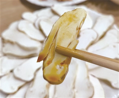 做法三:松茸刺身。切片后直接生吃,或者手撕直接食用(此法对松茸的新鲜程度要求较高,并不是所有产地的新鲜松茸都适合生吃)。(方志坚)