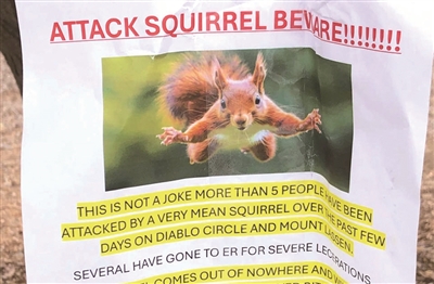美联社24日报道,有关部门已四处张贴告示,提醒民众小心防备。告示标题为“警惕松鼠袭击”,并配有8个感叹号;正文写着:“这不是玩笑。过去几天,已有超过5人遭到一只坏透了的松鼠袭击……”