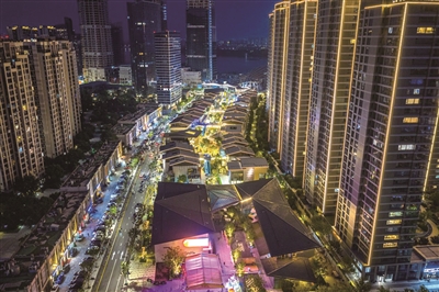 夜幕降临,秦望水街点亮富阳“夜经济”。