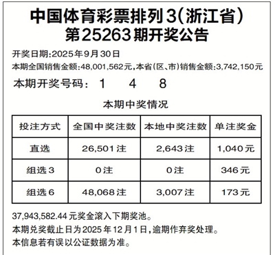 中国体育彩票排列3(浙江省)