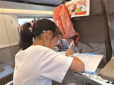 同样带了一半作业出门的还有刘女士,她的两个女儿一个读五年级,一个读二年级,“只有在去泉州的高铁上做了一点口算”。
