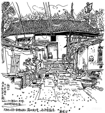 2015年初,天气虽然阴冷,我还是骑着自行车去了留下一趟,我重又找到当年画画时所坐的位置,虽已过多年,又好像就在眼前,当时真是“想去就去”“想画就画”。这些画虽不是大作品,也不会得奖,只是自己闹着玩,就是喜欢在地上一坐,端着本子写生的那种舒服劲,以及身边围上一圈过路百姓。