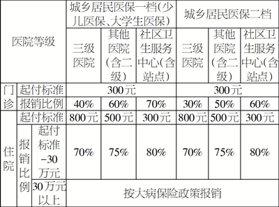 相对于门诊,住院医疗费用的报销比例更高,保障力度更大。杭州市城乡居民医保住院起付标准按医院等级划分:社区卫生服务机构为300元,其他医疗机构(含二级)为500元,三级医疗机构为800元。起付标准以上至30万元的部分,按照医院等级报销比例为:社区卫生服务机构80%,其他医疗机构(含二级)75%,三级医疗机构70%。超过30万元的部分,自动进入大病保险支付范围,实现“基本医保+大病保险”的双重保障机制。