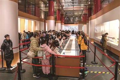有人抢不到票,在社交平台上直呼“到底是谁看到故宫百年展了啊”,也有不少网友“吐槽”:“预约拼的是运气,看展靠的是体力。”有网友发帖称排队时间长达10小时,甚至有人从下午开始排队,午夜才看完全部展览离开故宫。