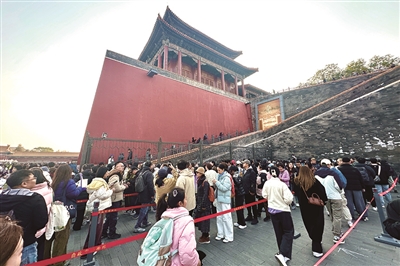 “我朋友前段时间来的,光在午门下面就排了5个小时,那叫一个崩溃啊,现在这样好太多了,不用一直排队硬等。”排在我后面的韩女士说,我们算幸运的,再等等就能进去了。