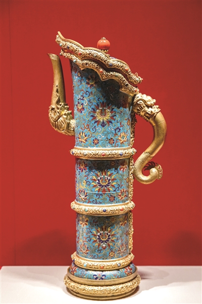 掐丝珐琅嵌宝石缠枝莲纹多穆壶