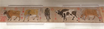 队伍依次经过李白的《上阳台帖》、刘松年的《卢仝烹茶图》、韩滉的《五牛图》、沈周的《仿黄公望富春山居图》等展览重点文物,观众们无不低头观赏,拍照记录。