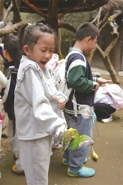 下午的孔雀表演和科普环节更受大家欢迎,同学们都争先恐后地举着小手,回答老师提出的问题,身边不时传来同学们此起彼伏的欢呼声。
