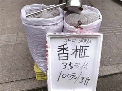 昨日,杭州刀茅巷一家炒货店门前,王顺根师傅在泡沫板上郑重地写着:香榧100元/3斤,开口香榧38元/斤。一位路过阿姨说,“去年记得卖43元一斤,今年新货上来嘎便宜呀,是不是掺了陈货?”