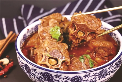 紫光园的老师傅们用10余种秘制香料、18道秘制工艺制作,不但能去除膻味,还能使肉和汤汁更入味。