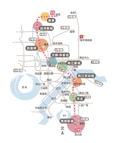 南北贯穿萧山到临平的15号线,多个车站顺利封顶。 制图 高薇