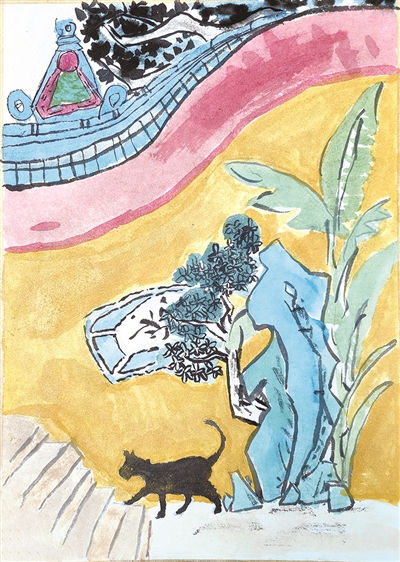 插画狮:《院落墙角的猫》杭州市崇文未来学校三(5)班 韦一心