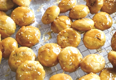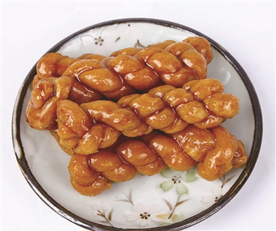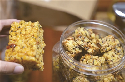 红糖小零嘴——玉米糖,采用爆玉米粒+老楼红糖+芝麻+枸杞制作而成,松脆可口;红糖麻花,外脆内酥,咬一口满嘴留香;红糖酥饼,饼皮酥脆,梅干菜和猪肉结合,咸、鲜、甜、香,一口下去超满足。