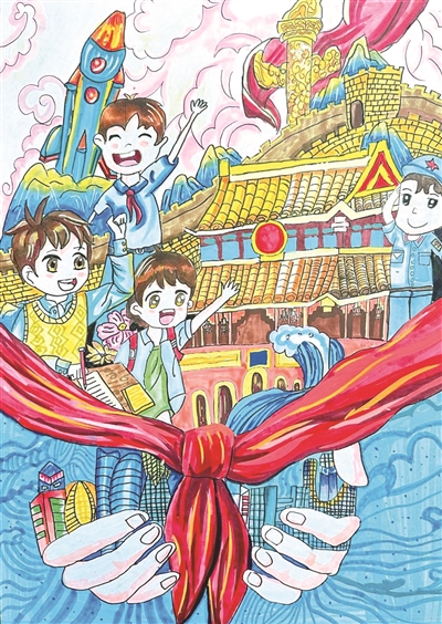 插画狮:《红领巾逐光向未来》杭州市长青小学五(2)班 李嘉鸿