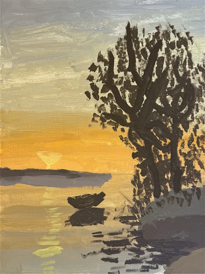 插画狮:《落日栖舟》杭州市萧山区崇文世纪城实验学校二(5)班 宫澄希