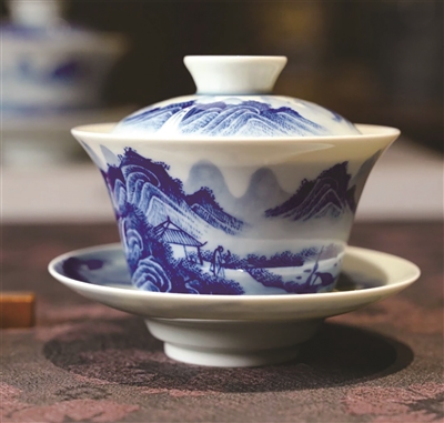 青花瓷,浓浓中国风。12月5日,都江堰中法茶叙上,一套青花山水盖碗亮相,宛如“桌上的中国使者”,向世界展示着中国瓷器独一无二的东方雅韵。