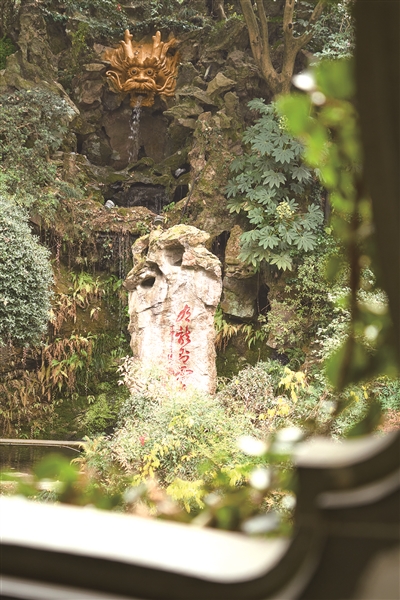 打卡点一:新西湖十景之一“黄龙吐翠”。崖壁间,黄龙探伸而出,清泉倾泻而下,水声悦耳,与池畔“水不在深,有龙则灵”的石刻相映成趣。
