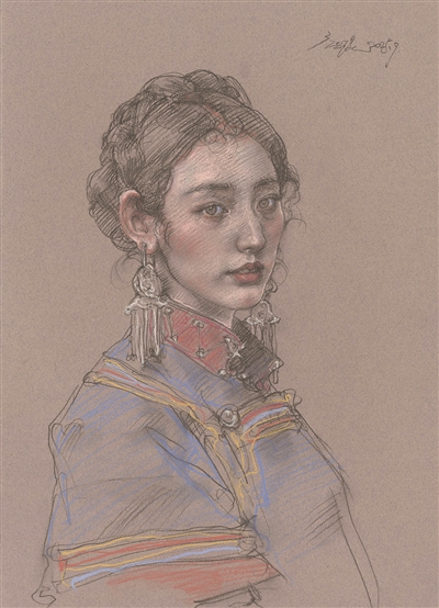 “灰色底纸能衬托鲜艳色彩,让高光更突出,创作也更高效。”庞茂琨说,这种传统技法帮助他快速捕捉模特的生动瞬间,仿佛“不期而遇”的灵光。