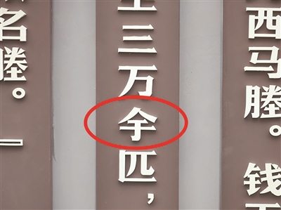 橙友“采撷人”向橙柿直通车反映:文二路马塍路路口新建了一个“马塍文化宣传墙”,内容丰富,史料翔实,布置考究。可惜在“马塍溯源”一栏,有个“余”字少了不止一点——左撇右点都缺失了。请相关部门尽快查漏补缺!
