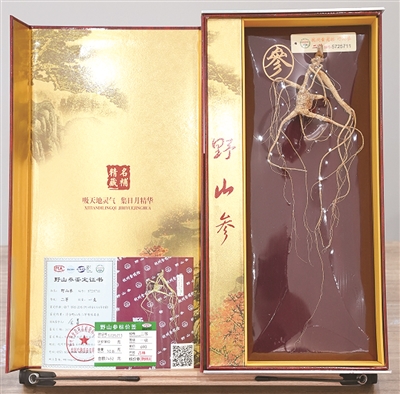 最近,有位40多岁的老顾客来店里买野山参,“来你们这里买了三年了”,这次一共买了2万多元,准备带回老家送爸妈和长辈。
