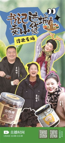 书记进城卖山货淳北专场直播来啦。1月4日12:00,来自瑶山、临岐、王阜的推荐官,将带来三款滋补又美味的山乡好物,陪大家健康迎新年。