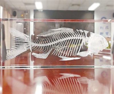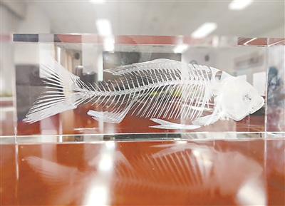 无肌间刺异育银鲫骨骼模型 “无刺鲫鱼”:没有肌间刺,仅保留肋部和脊椎的骨骼