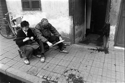 照片中,建国路附近一条小巷里,居民们洗衣、打水、晒太阳,尽显烟火生活。