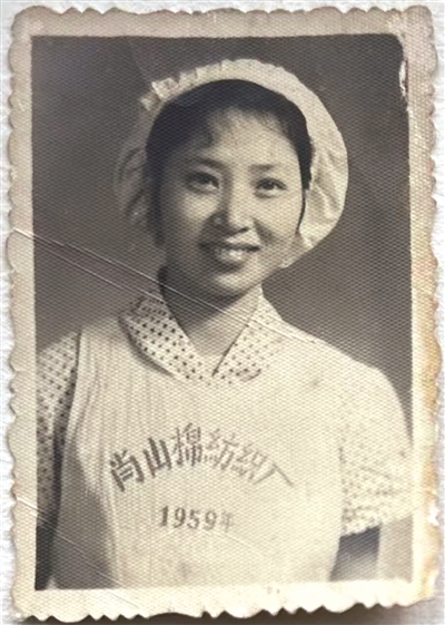 徐大伯还向记者展示了母亲年轻时的照片:一个娟秀的姑娘,身穿纺织女工工装,笑容绽放。工装上有“肖(萧)山棉纺织厂、1959年”字样。肖(萧)山棉纺织厂后来改为杭州第二棉纺织厂。