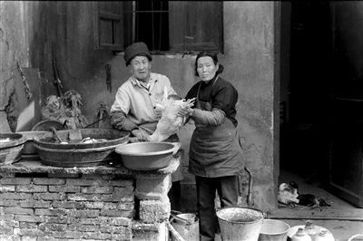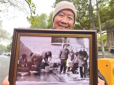 徐大伯说:“这张照片拍的是老底子马市街老街坊的日常生活。照片中最右边,系着围裙的就是我妈妈。”