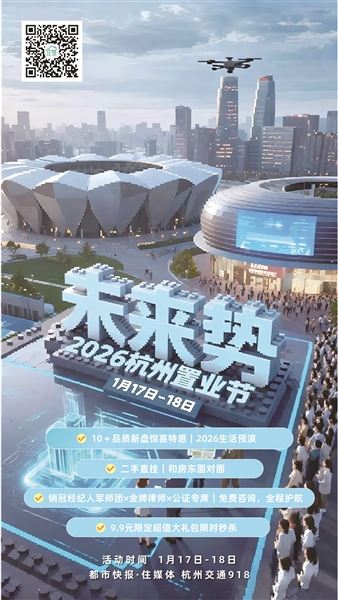 1月17日-18日(每日10:00-16:30),在杭州市拱墅区体育场路218号杭州新闻大厦,“未来势”2026杭州置业节,我们不见不散!