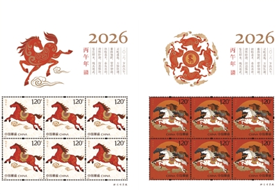 中国邮政发行的《丙午年》特种邮票,共2枚——《驰跃宏图》与《万骏臻福》,是生肖邮票序列的第四轮佳作,由王红卫教授与赵恩重联袂创作。