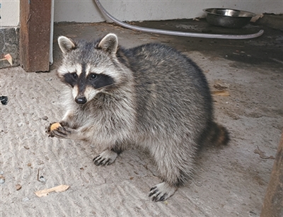 “小浣熊攀爬能力比较强,越高的地方越想去,觉得越高越安全,它们喜欢爬到屋顶。