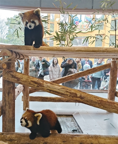 “小熊猫属于国家二级保护动物,也是网红动物,在‘最可爱动物’排行榜中位列第13名,它们天生胆小,但对饲养员很认可,谁对它好就与谁亲。我们的两只小熊猫一公一母,公的两岁,母的一岁半,三岁的小熊猫将进入繁殖期,它俩可能会生宝宝。