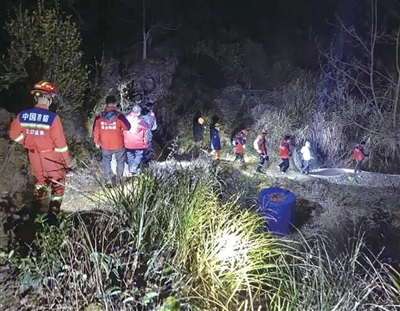 “一个人在前面拿手电筒探路,另一个人跟着,往山下摸索了大概半个小时,我一脚踩到溪沟里,鞋子裤子都湿了。”丁先生说,当时感觉脚有点僵,不敢再往前走,后来救援队员告诉他,当时再往前走就是悬崖。