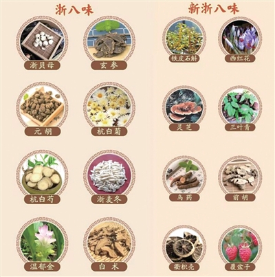 “浙八味”是浙江省八种代表性道地药材,包括浙贝母、杭白菊、玄参、白术、灵芝等,是保障国民健康和农民增收致富的健康产业。